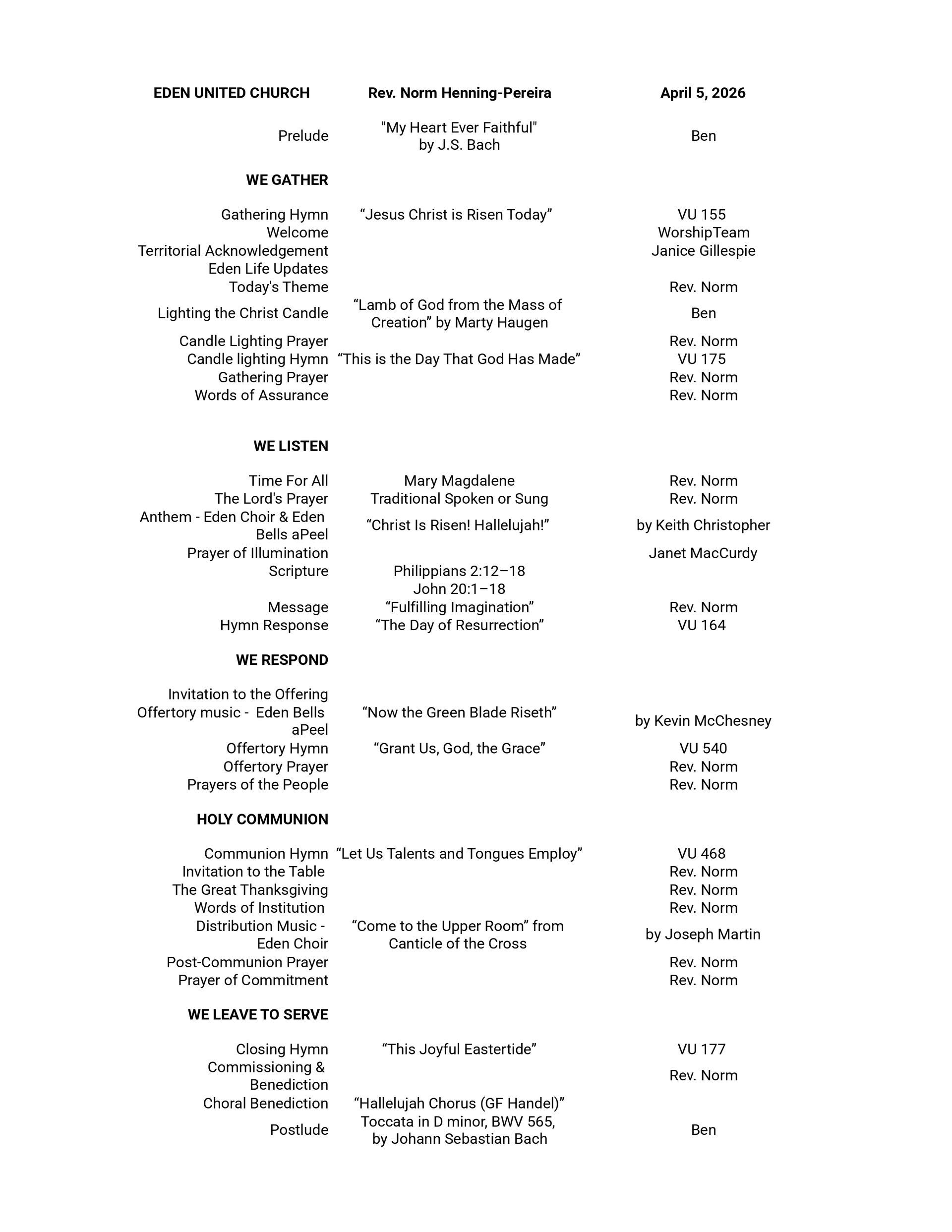 Order of Service - Easter Sunday